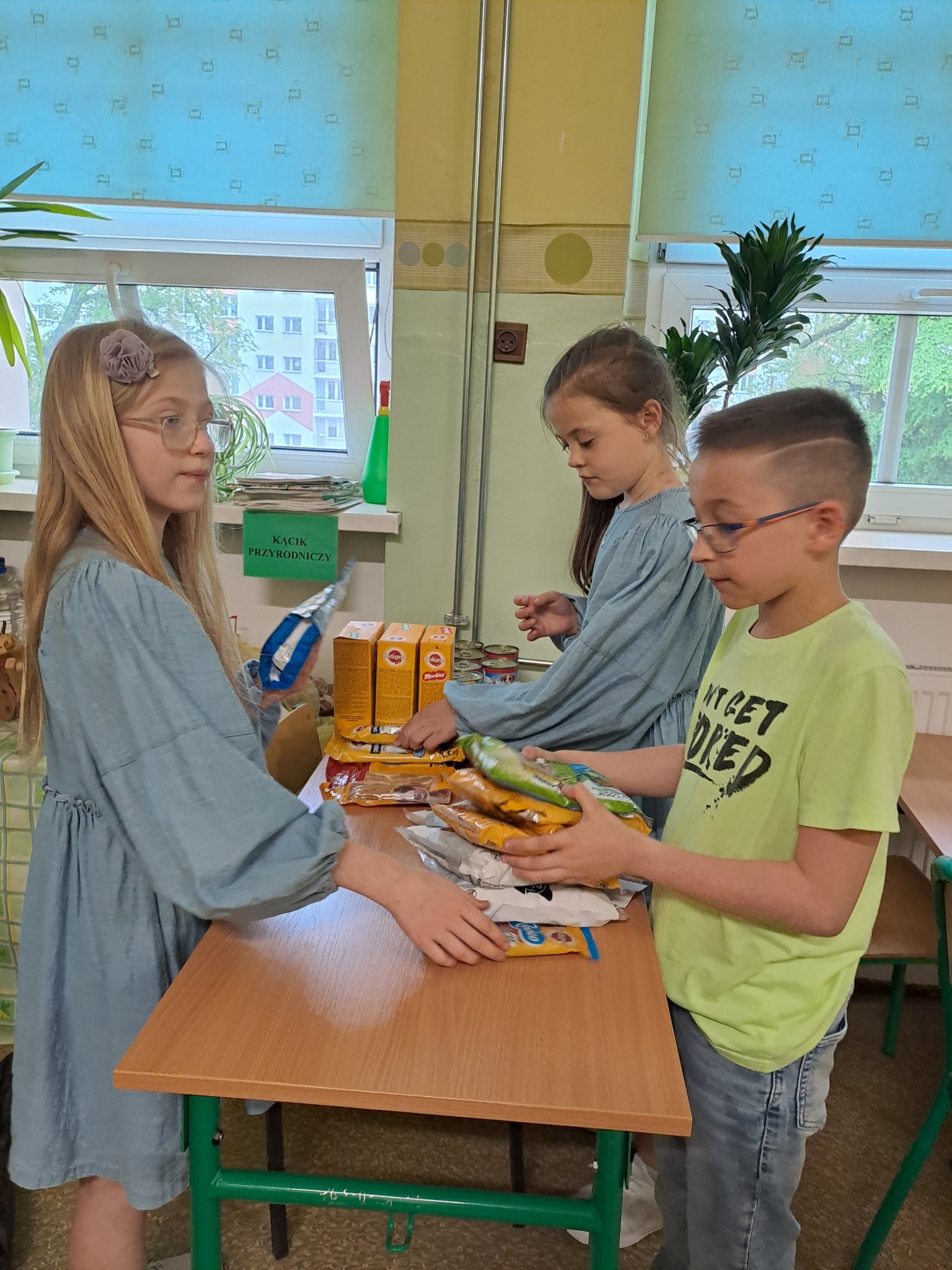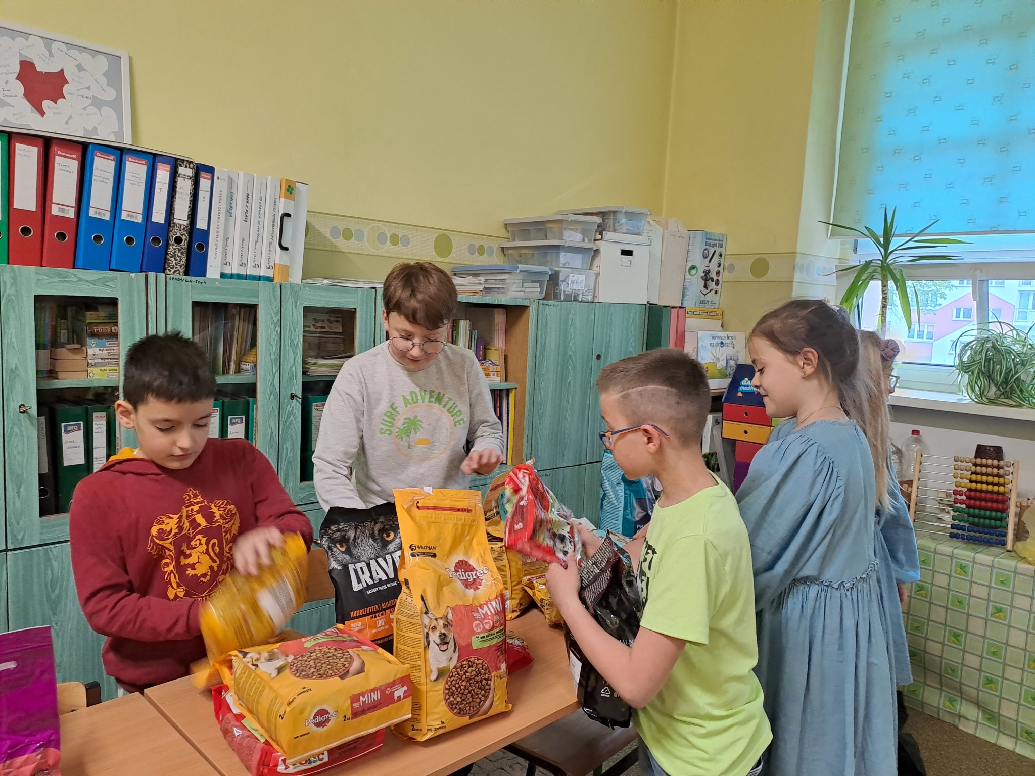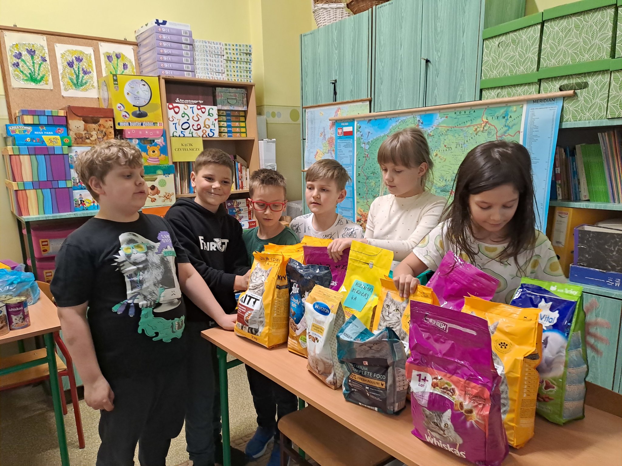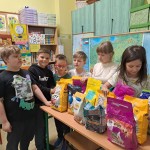 Zbieraliśmy karmę dla zwierząt ze schroniska w Łodzi. Wielu uczniów przyniosło dary dla bezdomnych czworonogów. Zebraliśmy około 50 kg suchej karmy dla psów i kotów, 31 puszek małych i 9 dużych, a także dużo karmy w saszetkach, w pasztecikach, przysmaków i ciasteczek.